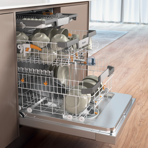 最大限の柔軟性:背の高いボトルやグラスを下段バスケットでしっかりと保持し、最適な洗浄を実現します。 - ●Miele@home による家庭用機器のネットワーク化